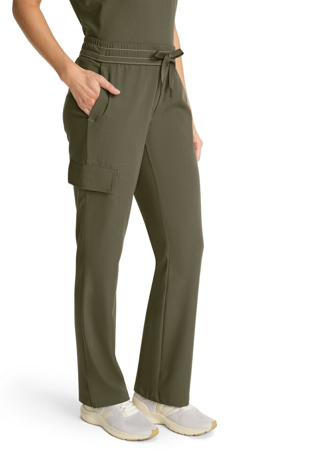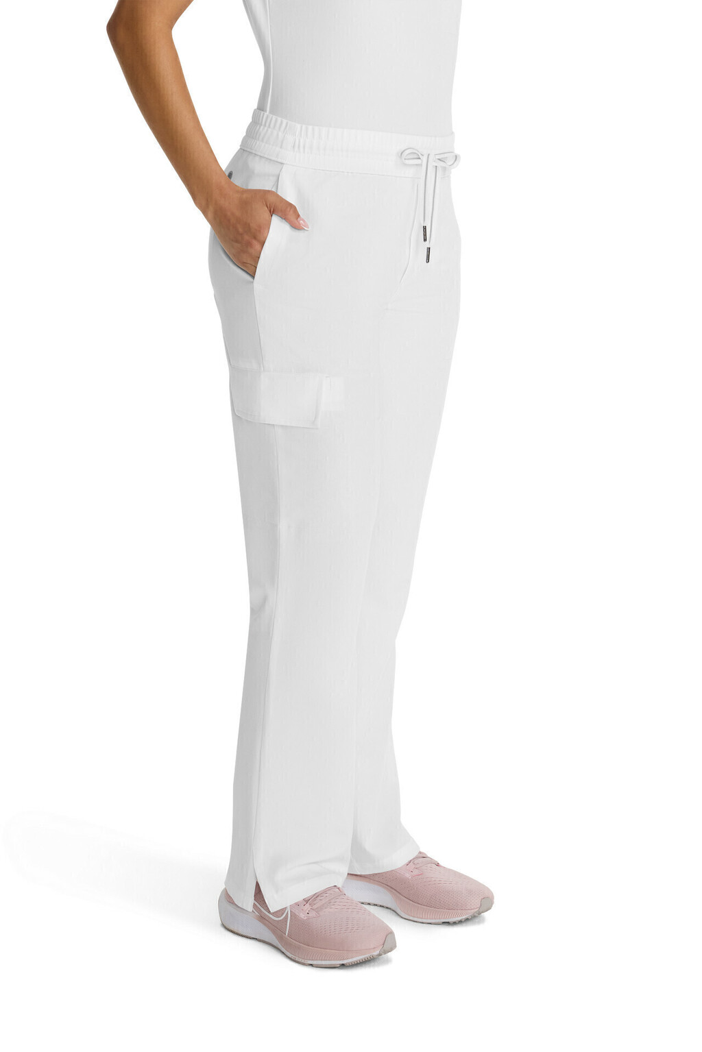 Su tiro medio y pierna recta estilizan la silueta, mientras que la cintura elástica con cordón y la bragueta simulada aportan un acabado pulido. Incorpora cuatro bolsillos funcionales, incluido un bolsillo cargo lateral convertible, y detalles de forro estampado que suman un toque de diseño. El canesú curvado en la espalda mejora el ajuste sobre la cadera para un calce femenino y moderno.