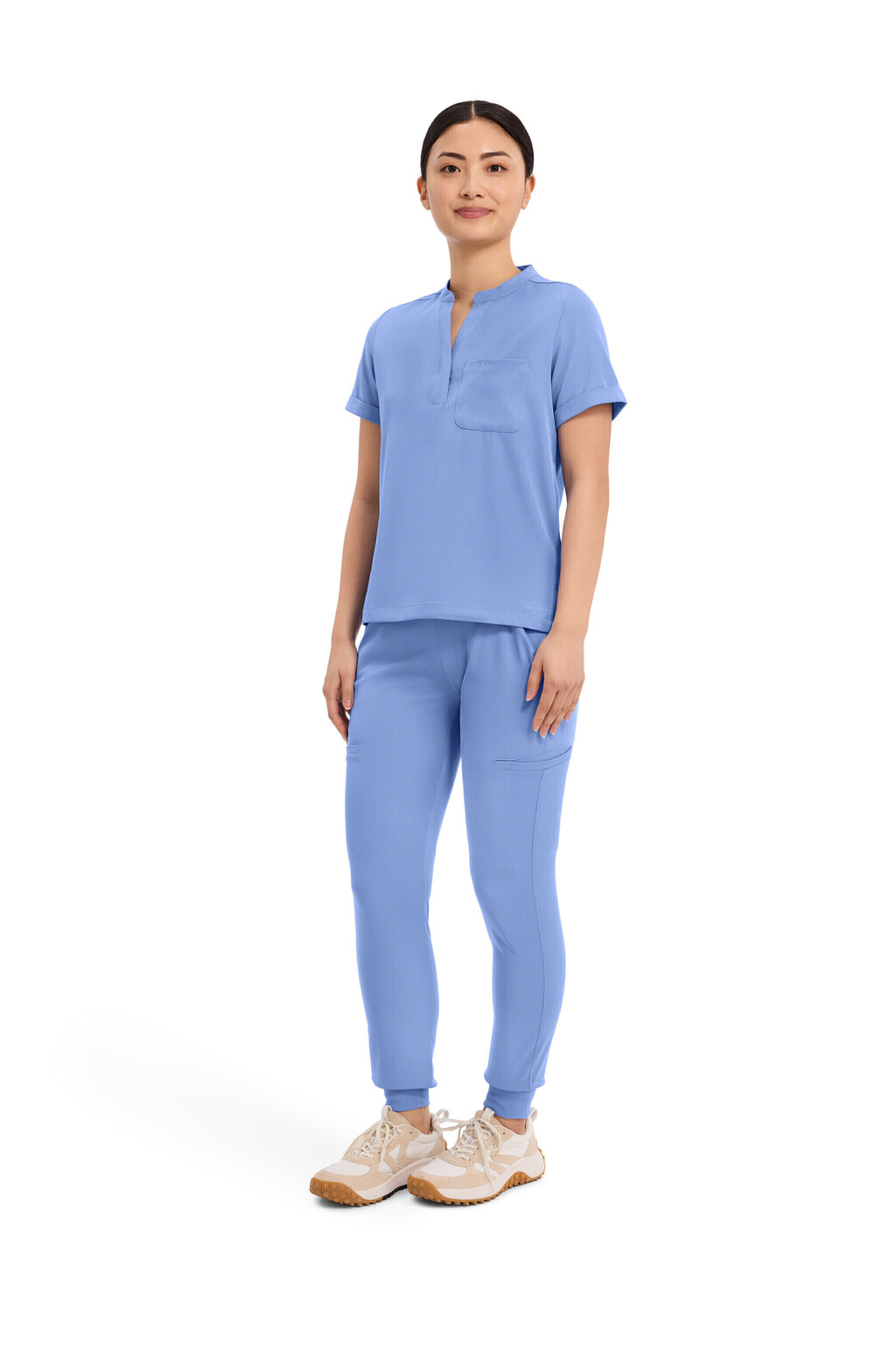 La sencillez con estilo nunca se vio tan bien. El top Macy es una prenda moderna, sin detalles innecesarios, con bolsillo en el pecho para lo esencial y mangas con puño que le dan un toque actual.